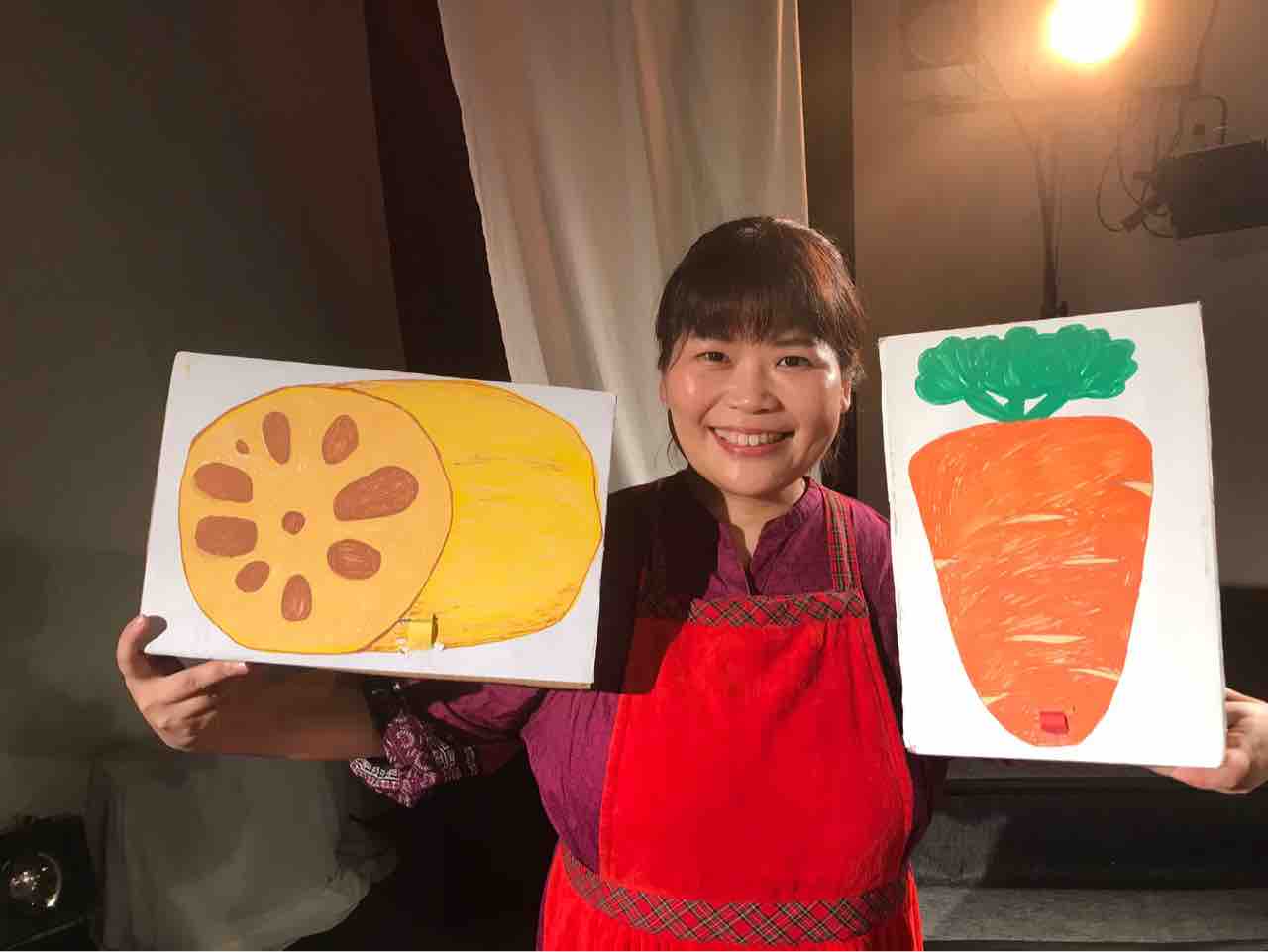 謎の劇中劇発動!キッチンが舞台の作品を劇場で見ていただくにあたり、大胆に動きのある演出にしましたが、林檎さんの朗らかなキャラクターのお陰でいい具合に馴染みました。迷った時はひたすらかわいい女将らしさを追求しました。