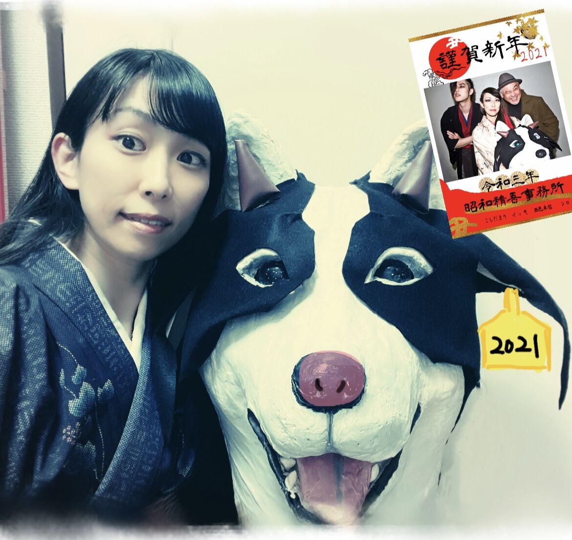 こちら去年の賀状でウシになったシロ。