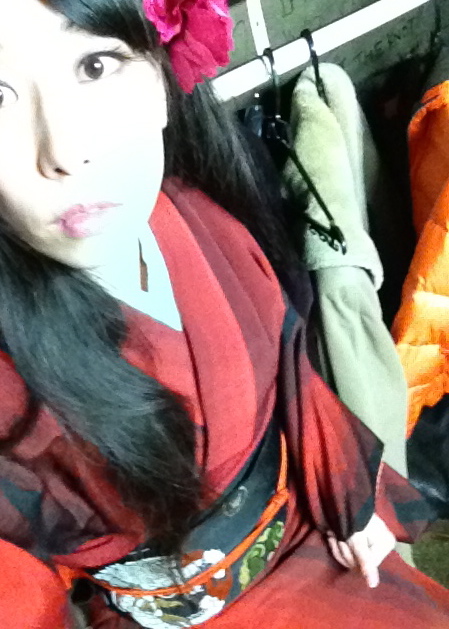 このライブハウスはディメンジョンて名前の頃に出たことがあったので、楽屋の天井低いの知ってて、着付けは済ませて来た。メイクの仕上と髪飾り付けたら準備終了。