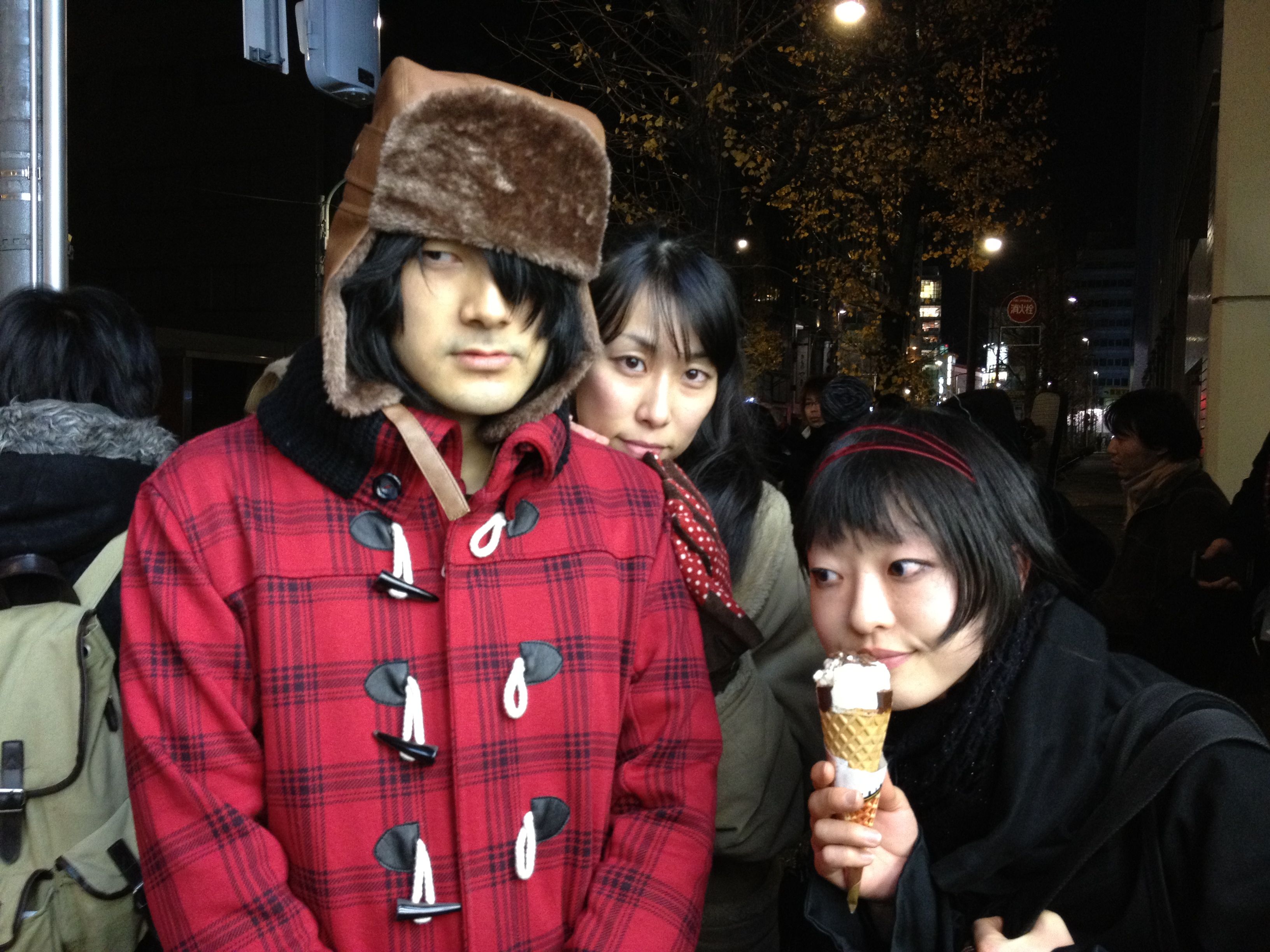 楽屋に入るとfujimiya.tvのみんなが準備中。見事な赤黒具合。