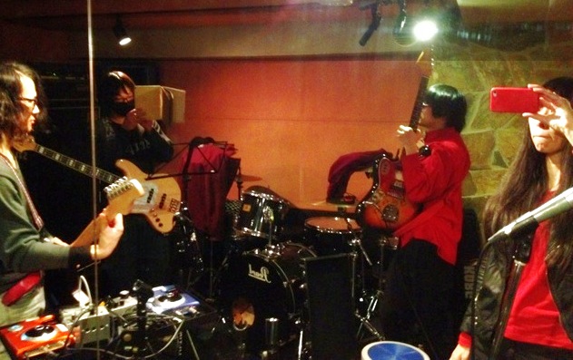 ボーカル一人と楽器隊三人で普通のバンドみたい(笑)