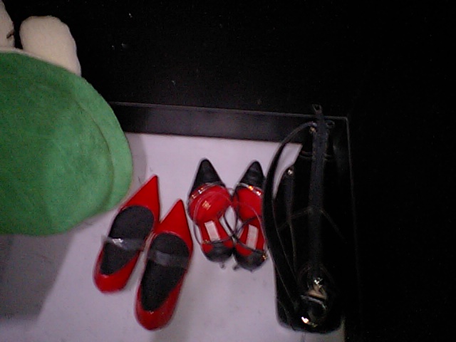 左から美子のクッション、美子の靴、わたしの靴、わたしの鞄。
