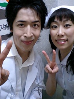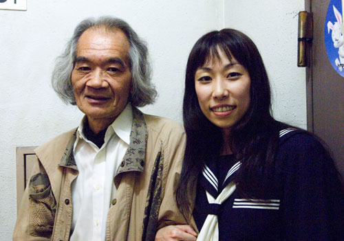 こんな恰好でお客様をお迎え。中村天誅さんと。