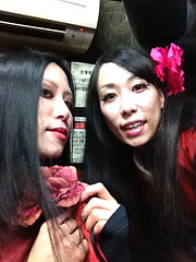 このライブハウスはディメンジョンて名前の頃に出たことがあったので、楽屋の天井低いの知ってて、着付けは済ませて来た。メイクの仕上と髪飾り付けたら準備終了。