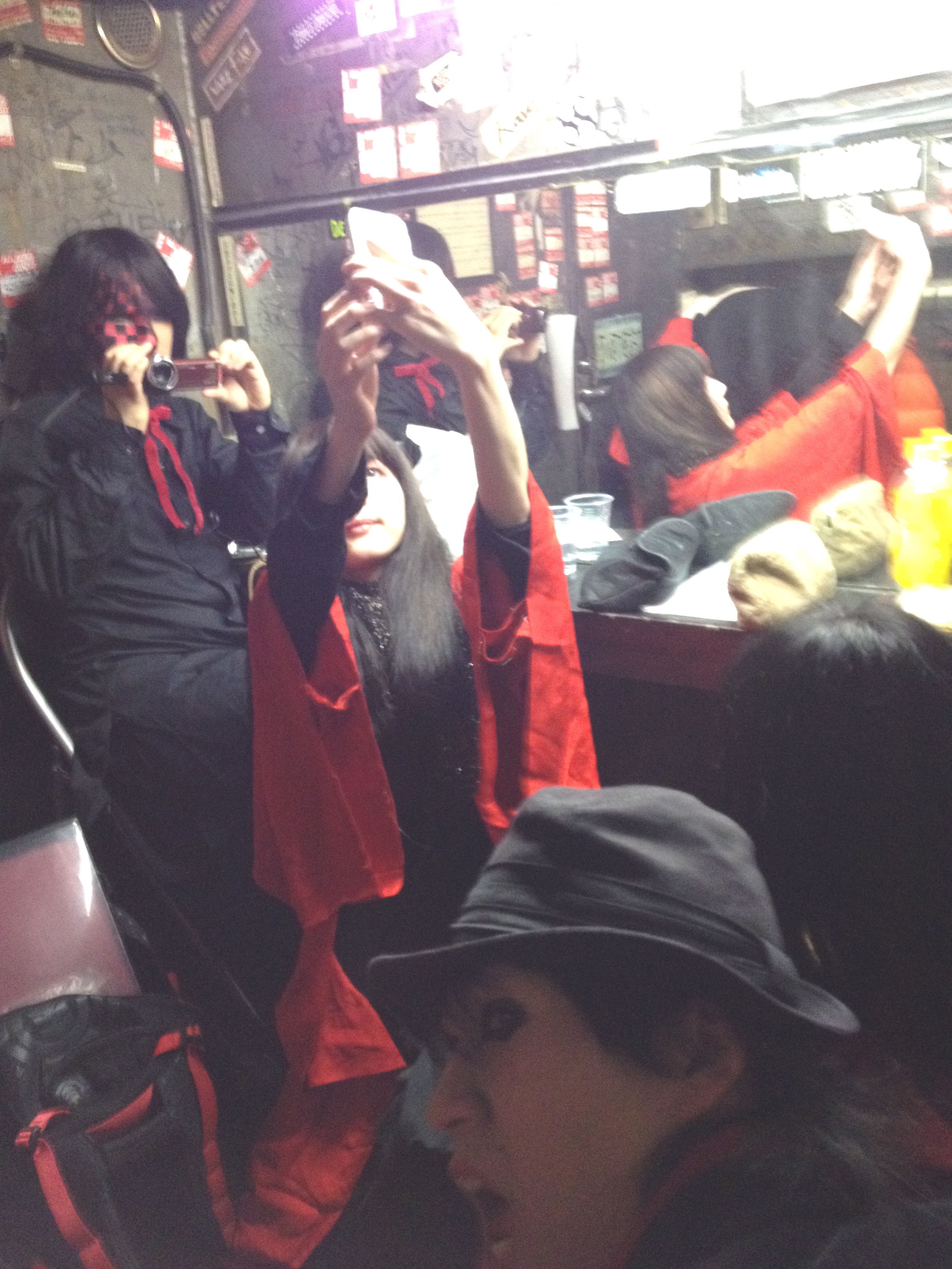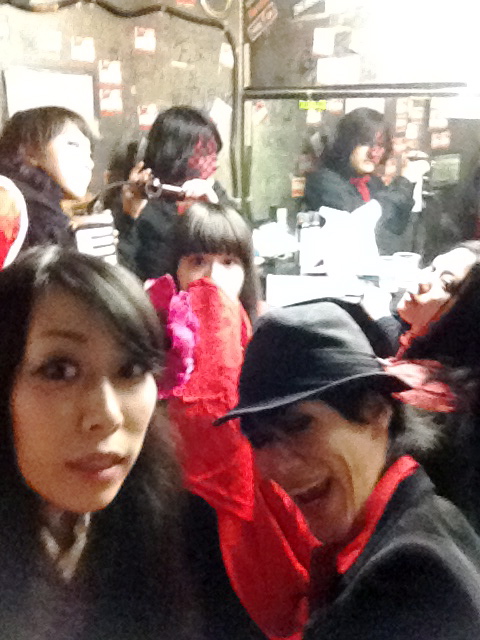 楽屋に入るとfujimiya.tvのみんなが準備中。見事な赤黒具合。
