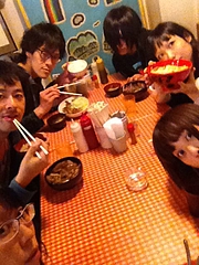 わたしとまーむーは親子丼。写真に写ってる彼女の赤い丼と色違いの黒い丼だったけど大きさは同じ。