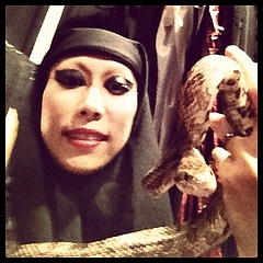画像解禁許可が出たので、昨日の通し稽古直前の、紅悦と愛蛇・みょんこと妙荘厳王。