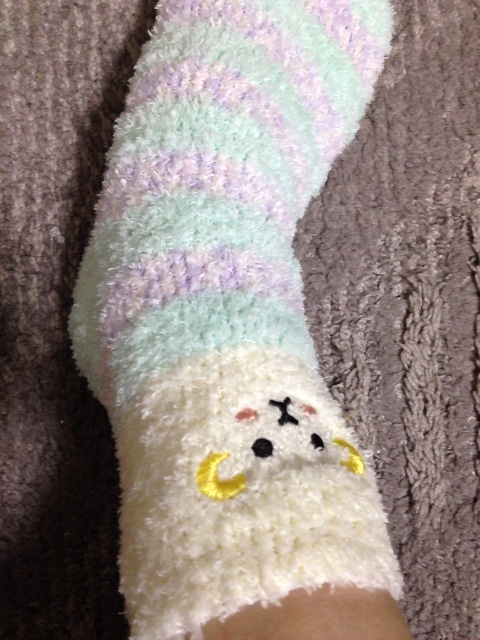 今日菜摘ちゃんにいただいたくつした。ほわっほわでしっとりやらかい。